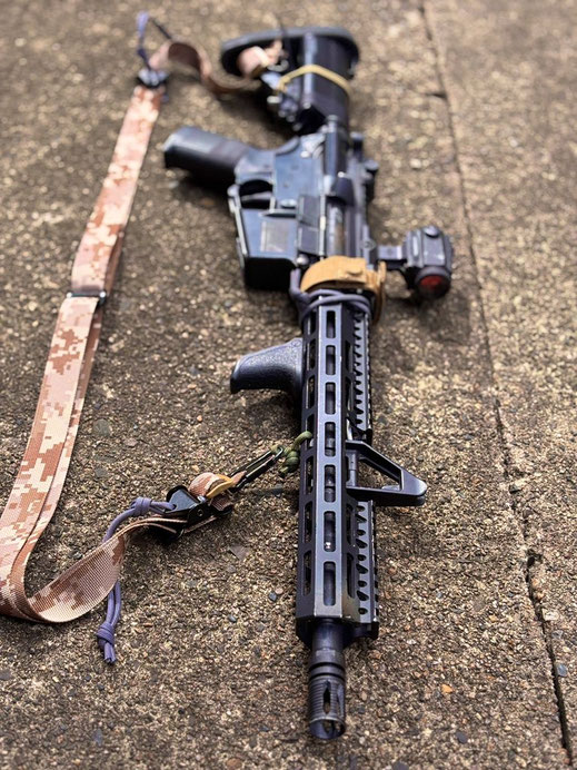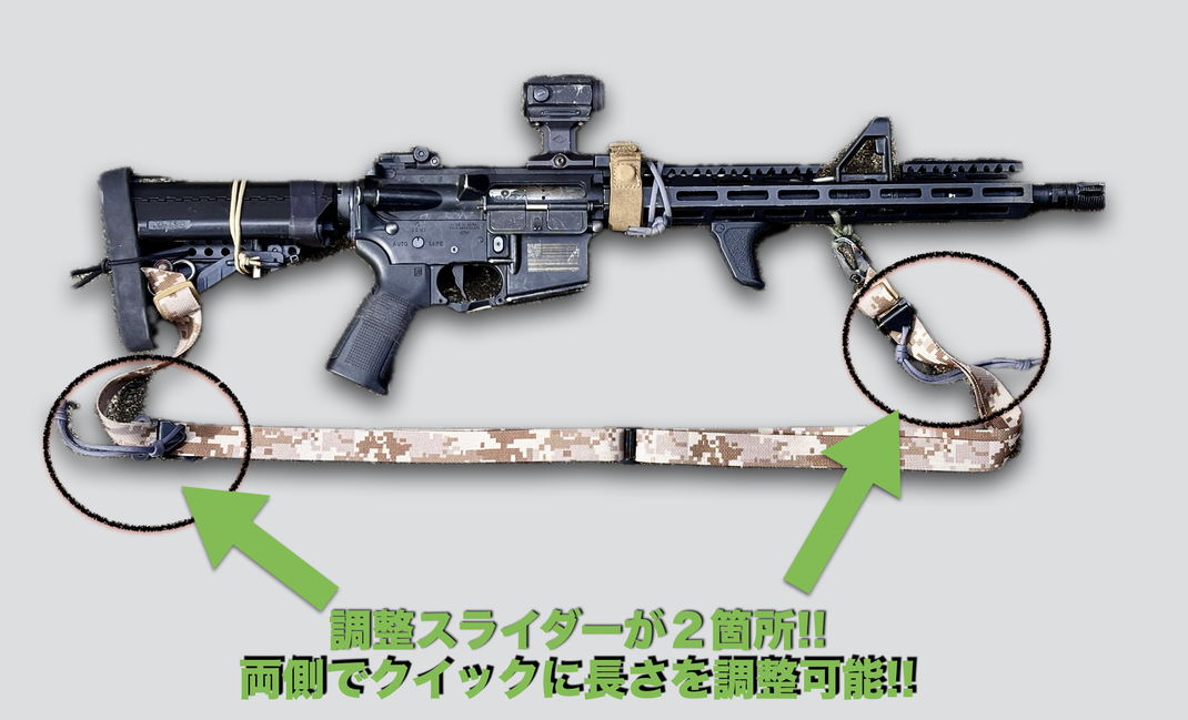 伸ばすときは大きく2倍伸ばし、ライフルを身体に引きつけるときはより身体にピタッと密着可能です!!